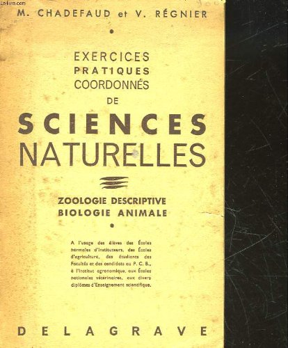 RO30057039. EXERCICES PRATIQUES COORDONNES DE SCIENCES NATURELLES - ZOOLOGIE DESCRIPTIVE - BIOLOGIE ANIMALE. 1950. In-8. Broché. Bon état, Couv. convenable, Dos satisfaisant, Intérieur frais. 560 pages. Nombreuses illustrations en noir et blanc dans le texte. Petit accroc sur le premier plat.. . . . Classification Dewey : 500-SCIENCES DE LA NATURE ET MATHEMATIQUES