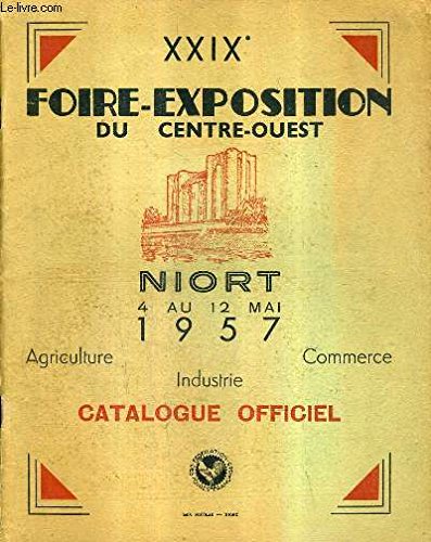 R240084827. XXIXE FOIRE EXPOSITION DU CENTRE OUEST NIORT 4 AU 22 MAI 1957 - AGRICULTURE INDUSTRIE COMMERCE - CATALOGUE OFFICIEL.. 1957. In-4. Broché. Etat d'usage, Couv. légèrement passée, Agraffes rouillées, Intérieur acceptable. 76 pages .. . . . Classification Dewey : 56-Catalogue