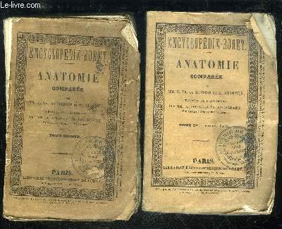 R300045009. ANATOMIE COMPAREE - ENCYCLOPEDIE RORET. 1850. In-16. Broché. Etat d'usage, Plats abîmés, Dos abîmé, Intérieur frais. Environ 900 pages en 2 volumes. Manque le premier volume du tome 1. Tampon de bibliothèque.. . . . Classification Dewey : 636.089-Art vétérinaire