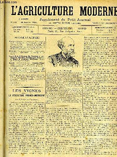 R300007461. L'AGRICULTURE MODERNE N° 161 - Prosper Gervais : La viticulture franco-américaine. Les hybrides en Champagne. . 1899. In-4. Broché. Bon état, Couv. convenable, Dos satisfaisant, Intérieur frais. 16 pages illustrées de quelques gravures en noir et blanc dans le texte.. . . . Classification Dewey : 630-Agriculture et techniques connexes
