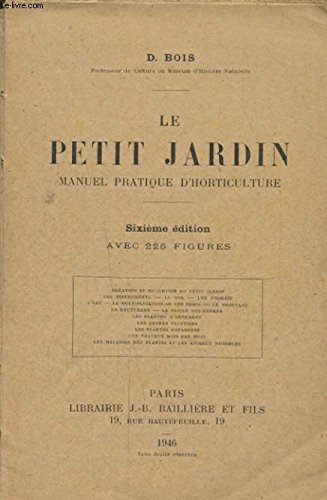 R200020666. LE PETIT JARDIN MANUEL PRATIQUE D HORTICULTURE. 1946. In-12. Broché. Etat d'usage, 1er plat abîmé, Dos abîmé, Intérieur frais. 461 pages, premier plat abimé.. . . . Classification Dewey : 630-Agriculture et techniques connexes