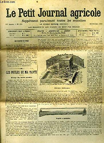 R300003734. LE PETIT JOURNAL AGRICOLE N° 634 - Les poules de ma tante : Elevage des jeunes poussins (Roullier-Arnoult). . 1908. In-4. Broché. Bon état, Couv. convenable, Dos satisfaisant, Intérieur frais. 16 pages illustrées de quelques gravures en noir et blanc dans le texte.. . . . Classification Dewey : 630-Agriculture et techniques connexes