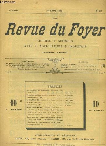 RO20130530. LA REVUE DU FOYER. LETTRES, SCIENCES, ARTS, AGRICULTURE, INDUSTRIE. 2e annee N° 22. AU TOMBEAU DES SAMOURAIS, L'EXPOSITION DE 1889, L'AR ETUDE AGRICOLE.... 30 mars 1889. In-4. Broché. Bon état, Couv. convenable, Dos satisfaisant, Intérieur frais. Paginé de 340 à 352. Texte sur 3 colonnes. 1 gravure en noir et blanc, dans le texte.. . . . Classification Dewey : 70-Journalisme, édition. Journaux