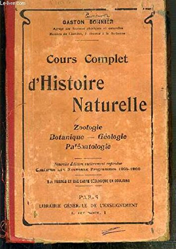 RO20197167. COURS COMPLET D'HISTOIRE NATURELLE - ZOOLOGIE - BOTANIQUE - GEOLOGIE - PALEONTOLOGIE - CONFORME AUX NOUVEAUX PROGRAMMES 1905-1906 POUR LE BREVET SUPERIEUR.. 1908. In-8. Relié. Etat d'usage, Coins frottés, Dos satisfaisant, Intérieur frais. 677 pages - nombreuses figures en noir et blanc dans et hors texte - coins rognés - quelques traces de d'encre bleu sur les tranches.. . . . Classification Dewey : 372.8-Livre scolaire : autres matières