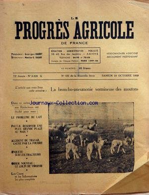 la broncho-pneumonie vermineuse des moutons - le probleme du lait - faut-il reserver une plus grande place au mais - accident du travail cause parla foudre - enquete sur les tracteurs - gibier nouveau, le colin de virginie