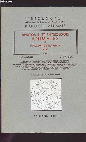 R320040083. ANATOMIE ET PHYSIOLOGIE ANIMALES (TOME II - FONTIONS DE NUTRITION) / BIOLOGIE ANIMALE / COLLEFTION BIOLOGIE SOUS LA DIRECTION DE M. ALBERTY OBRE.. 1966. In-8. Broché. Bon état, Couv. convenable, Dos satisfaisant, Intérieur frais. 548 pages / Nombreuses figures en noir et blanc in texte - 1er plat illustré d'un petit dessin contre-collé.. . . . Classification Dewey : 500-SCIENCES DE LA NATURE ET MATHEMATIQUES