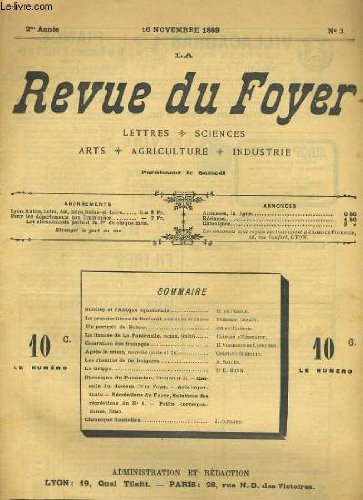 RO20130511. LA REVUE DU FOYER. LETTRES, SCIENCES, ARTS, AGRICULTURE, INDUSTRIE. 2e annee N° 3. STANLEY ET L'AFRIQUE EQUATORIALE. LE PREMIER LIEVRE DE BERLUROT, UN PORTRAIT DE BALZAC, COLORATION DES FROMAGES, LA GRIPPE, LES CHEMINS DE FER BULGARES.... 16 novembre 1889. In-4. Broché. Bon état, Couv. convenable, Dos satisfaisant, Intérieur frais. Paginé de 34 à 48. Texte sur 3 colonnes.. . . . Classification Dewey : 70-Journalisme, édition. Journaux